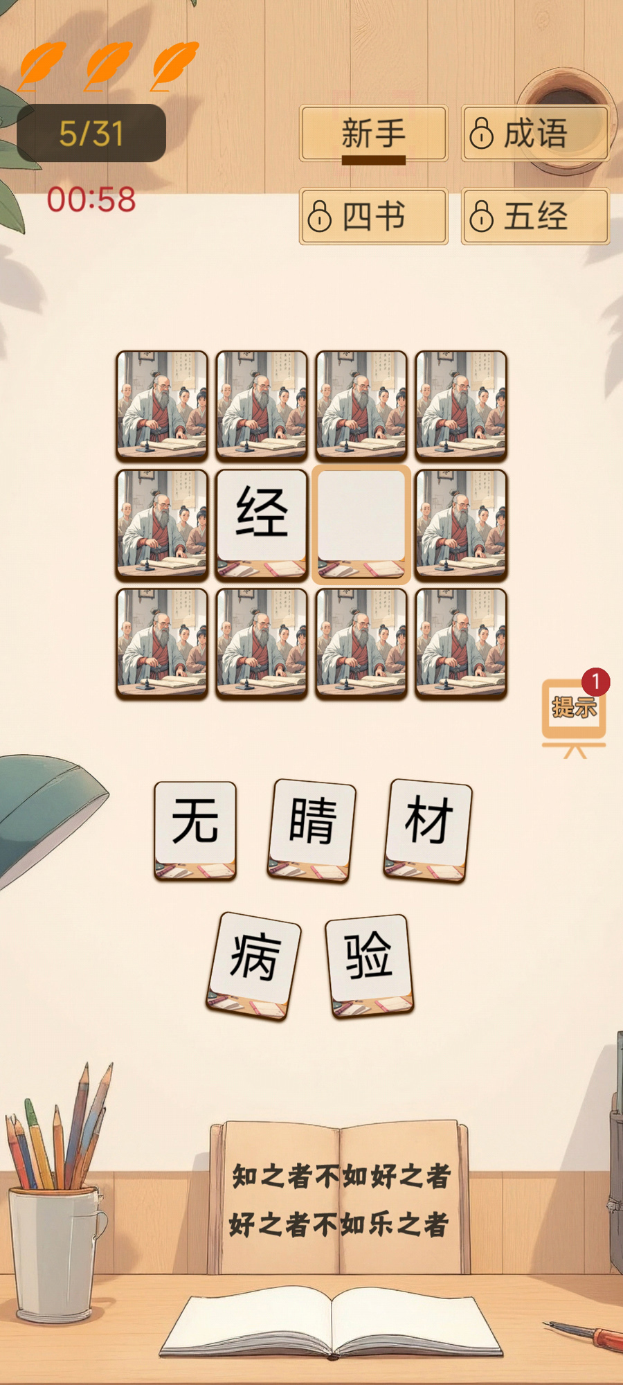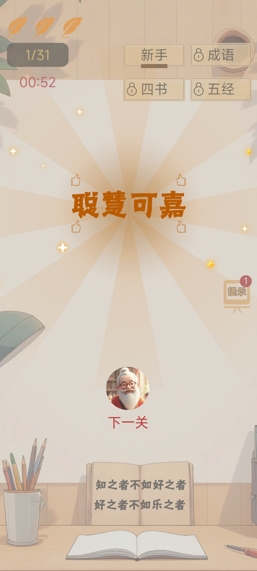 玩乐益智于一体。极速根据不同水平选择对应关卡 ,成语